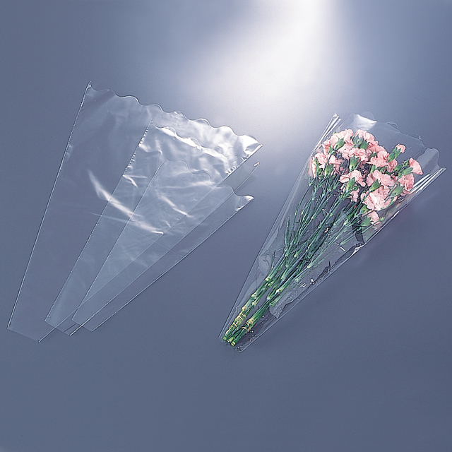 TOPフラワーパック フラワーコート CF-3N/4,000枚入 価格: ¥62,260 (税込) [ポイント還元 622ポイント~] 販売期間: 数量: セット 在庫: 在庫あり 在庫 在庫あり 返品についての詳細はこちら 商品コード:10206袋口が波形にカットされたフラワー袋。花を上品にひきたてます。 ※こちらの商品は、高鮮度保持フィルムオーラパックシリーズではありません。 シンプルな花用スリーブ【サイズ】30μ 底巾50mm×高さ520mm×天巾250mm 波抜