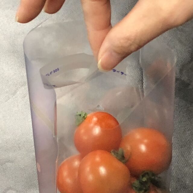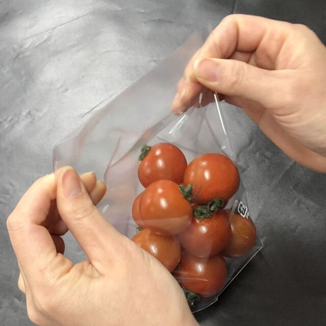 側面、底面に穴が開いていて通気性も抜群。ミニトマトや、スナップエンドウなどにおすすめです。ミニトマトが約120から150g入ります。