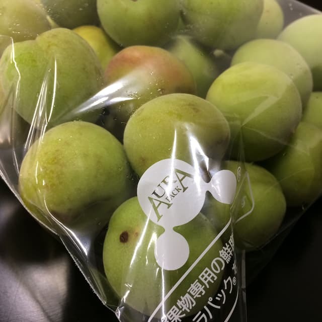 ”青果物を長持ち”させるフィルム「オーラパック」の青梅専用品。約1キロ用。高い水分子活性機能と、新機能“鮮度のヒケツ” による適度な通気性、透湿性が、青梅の変色などを抑制し、新鮮な状態に保ちます。