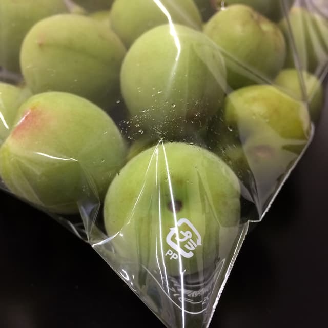 青果物が長持ちする梅専用袋。【サイズ】30μ 巾200mm×高さ320mm【重量】3.51(g/枚)