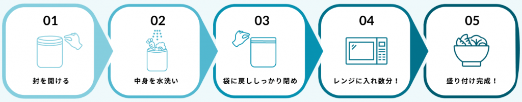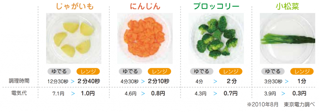 電子レンジの活用で茹で調理に比べ、大幅な調理時間短縮が可能です。