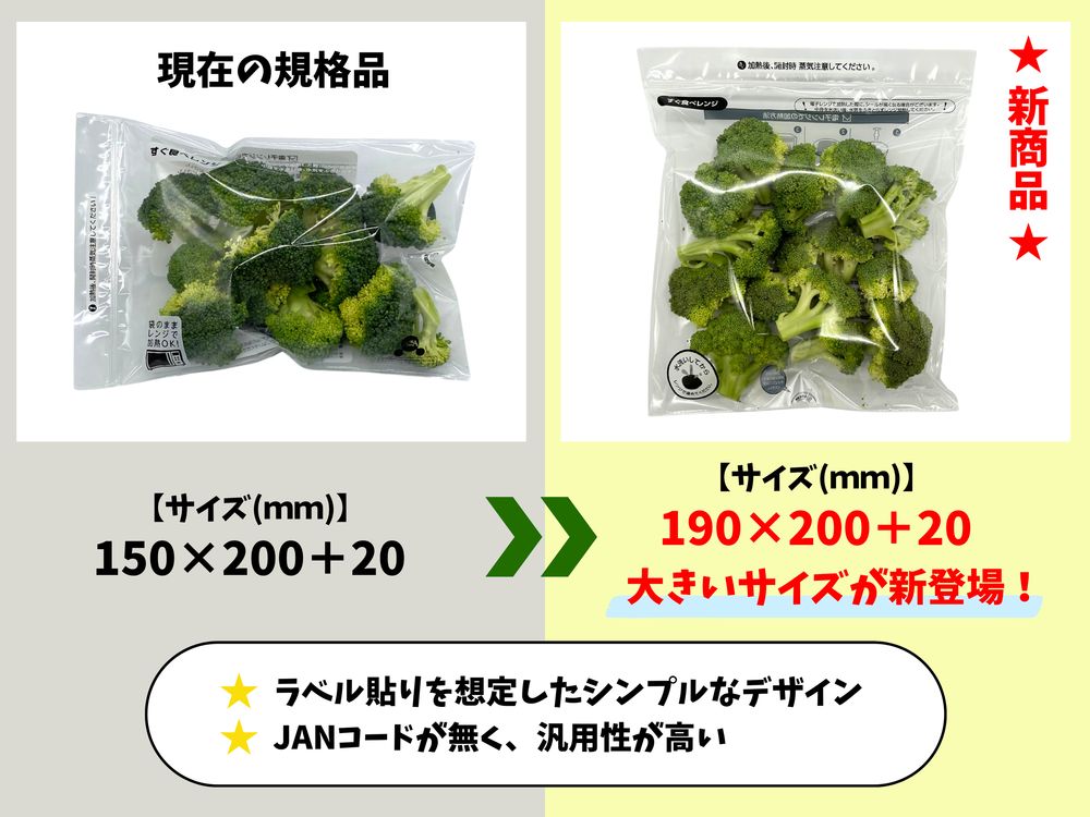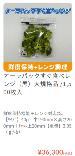 従来品のオーラパックすぐ食べレンジ(黒)規格品はサイズが150×200+20(mm)ですが、